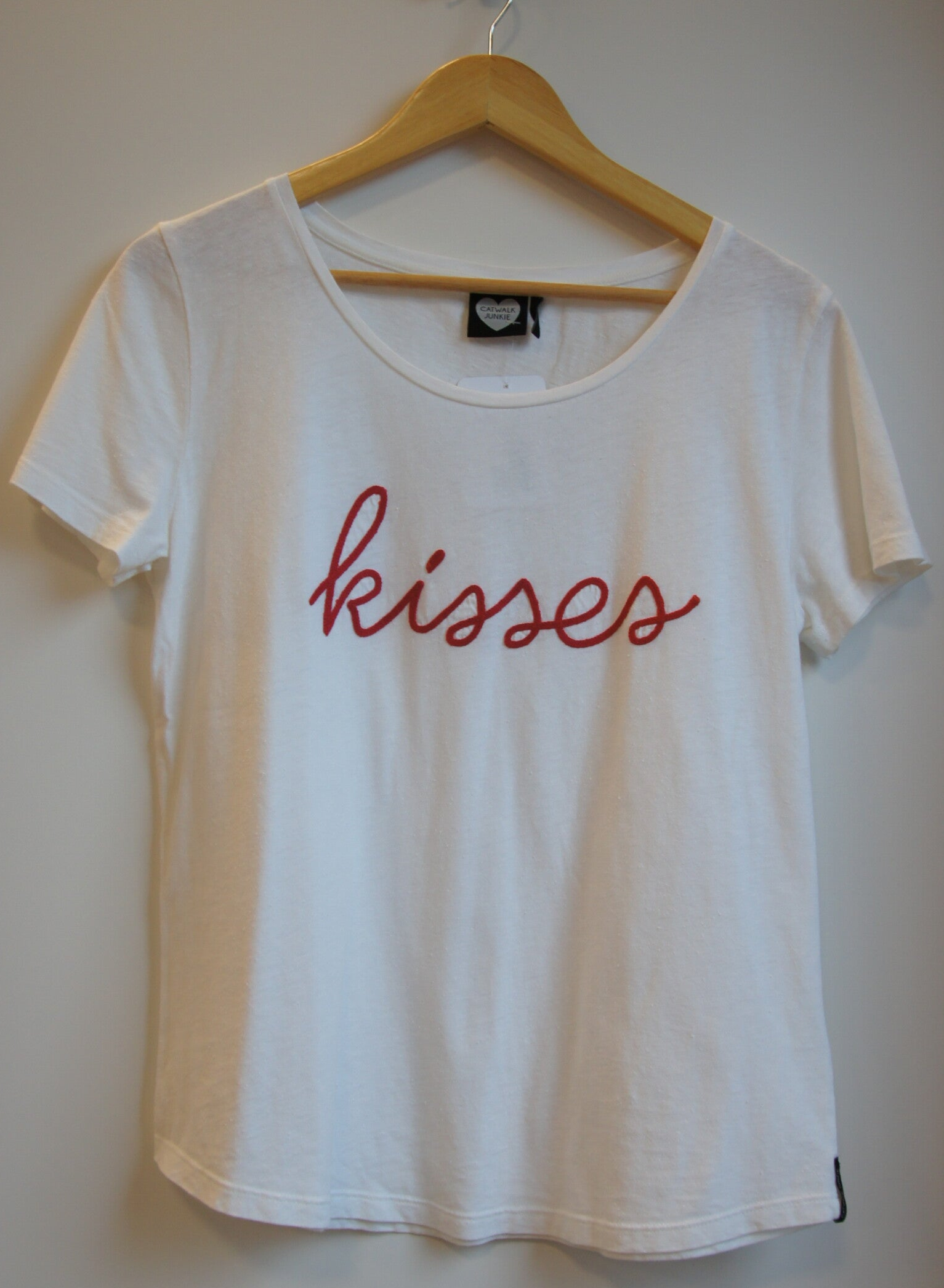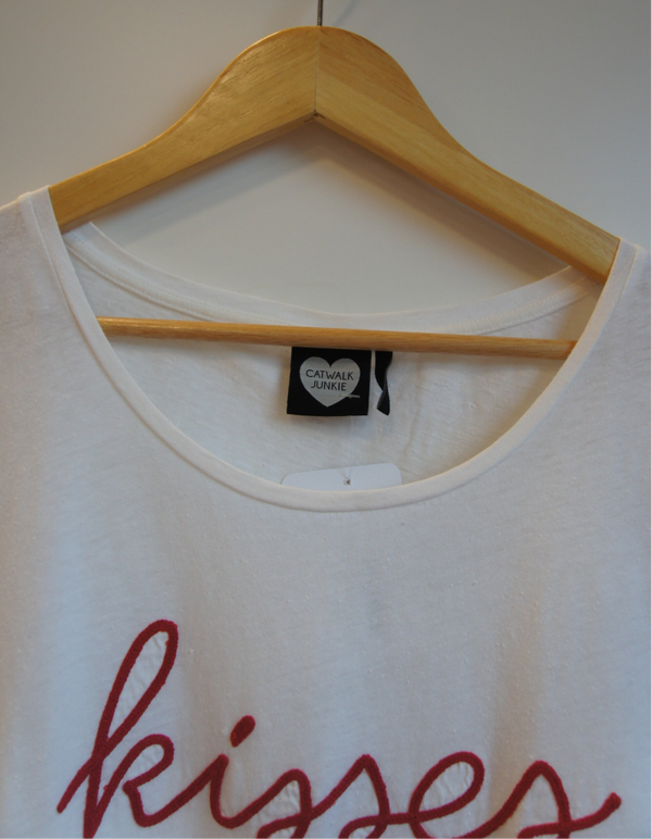 Wit t-shirt met korte mouwen van Catwalk Junkie met leuke opdruk geborduurd in rood.Shirt is in goede staat.